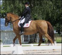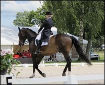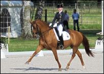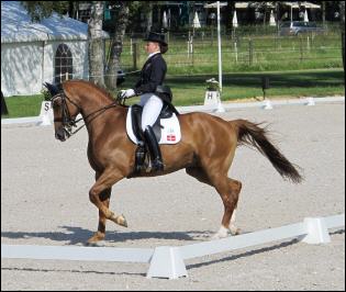 Das Bild rechts zeigt sie im Einsatz auf ihrem Pferd Atterupgaards Cassidy.